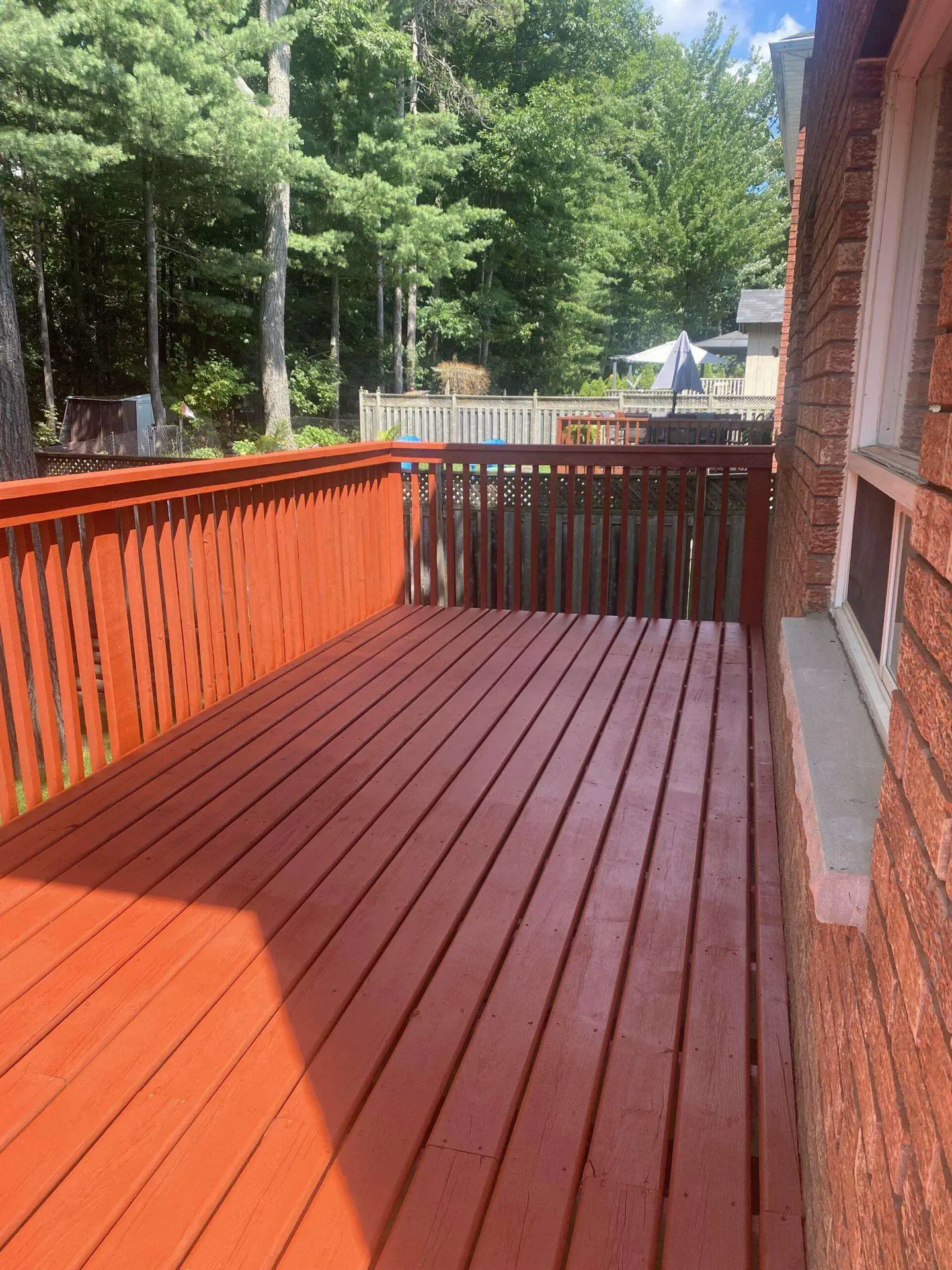 Lake Couchiching and Lake Simcoe waterfront properties face unique challenges: ice damage to decks and docks (due to freeze-thaw cycles), moisture intrusion from lake humidity, seasonal property maintenance needs, and material selection for marine environments. We use marine-grade stains, proper drainage systems, ice-resistant fasteners, and materials rated for waterfront exposure. Hundreds of completed waterfront projects prove our expertise.